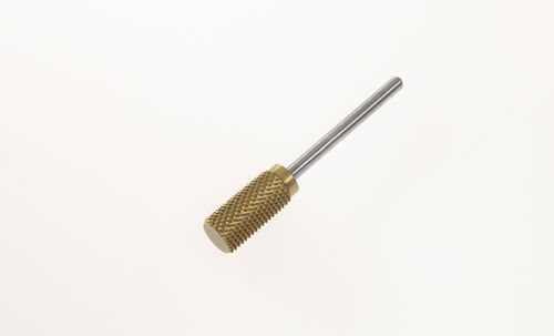 Fréza titanová, zlacená Promed - válec 198551 Pozlacené titanové frézky splňují nejvyšší nároky a zaručují dlouhodobou životnost. Pozlacené titanové frézky se oproti ostatním frézkám pomaleji zahřívají jsou tedy příjemnější při péči o nehty. Nedoporučujeme je používat pro úpravu přírodních nehtů.