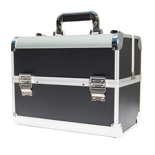 Kosmetický kufřík DOTS černý Profesionální kosmetický kufřík vyrobený z vysoce kvalitního hliníku. Sklopný vršek se 4-mi plastovými omyvatelnými přihrádkami pro přehledné uskladnění materiálu na modeláž nehtů a jiné kosmetiky. Ve spodní části kufříku je dostatek místa pro uložení UV či LED lampy. Uzamykatelný - 2 ks klíčků součástí balení. Ideální pro manikérky, kosmetičky, kadeřnice, make-up umělce, stylisty pracující v terénu nebo pro skladování kosmetiky doma. Velmi prostorný, veškeré doplňky na nehty budete mít na jednom místě!