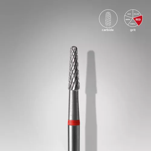 Karbidová fréza "Kužel" červený 23/8 mm Profesionální karbidová fréza s červeným označením jemné hrubosti určena pro přístrojovou manikúru a pedikúru. Tvar „Kužel“ je ideální pro korekci umělých nehtů, odstranění gel laku a zpracování kůže chodidel a polštářků prstů. Využití v manikúře: Příprava přírodního nehtu na modeláž Korekce tenkého umělého materiálu Odstranění přebytků materiálu Zpracování odchlípení v bočních nehtových záhybech Využití v pedikúře a podologii: Ošetření zrohovatělé kůže Odstraňování kuřích ok a mozolů Vyrobena z vysoce kvalitního kovu pro dlouhou životnost a efektivní výkon. Odolnost proti korozi. Lze je podrobit všem typům sterilizace a dezinfekce. Upozornění: Vždy dodržujte doporučené otáčky. Použití nad doporučený rozsah může způsobit poranění. Kód produktu: FT71R023/8